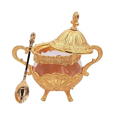 Aoibox Stainless Steel Sugar Bowl with Clear Lid and Spoon, Drum Shaped Condiment Container for Kitchen, 8.1 Ounces