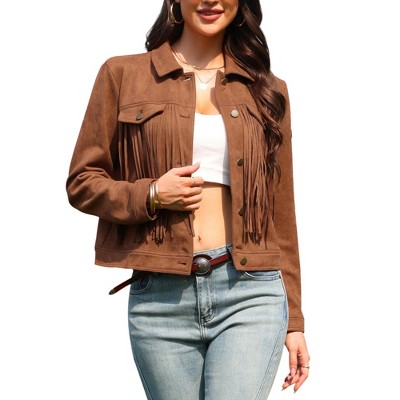 INSPIRE CHIC Women's Stand Collar Zip Up Long Sleeve Faux Fur Cropped Jacket