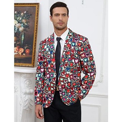 Cloudstyle Mens Floral Jacquard Dress Suit Jacket one Button Print Tux Blazer Sport Coat