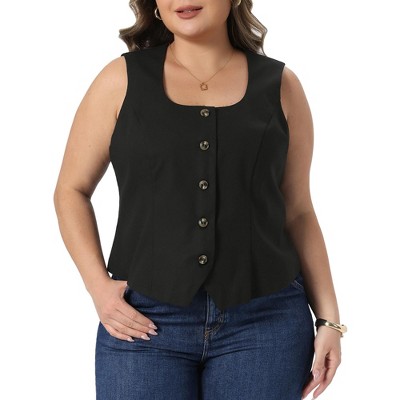 Women's Plus Size Sleeveless Button Down Fashion Vintage Casual Work Summer Lined Crop Vest - Agnes Orinda