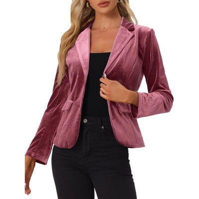 INSPIRE CHIC Women's Velvet Long Sleeve Notch Lapel Button Vintage Work Office Blazers with Pockets