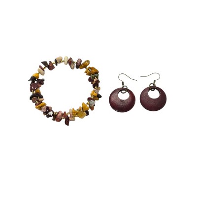 Michelle Marie Boutique's Mookaite Bracelet and Burgundy Geometric Hoop Earring Jewelry Set,