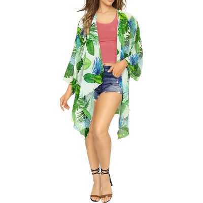 HAPPY BAY Womens Summer Tropical Beach Loose Casual Tops Cardigan for Women Cover Up Duster for Women One Size Shamrock Green, Monstera Leaves