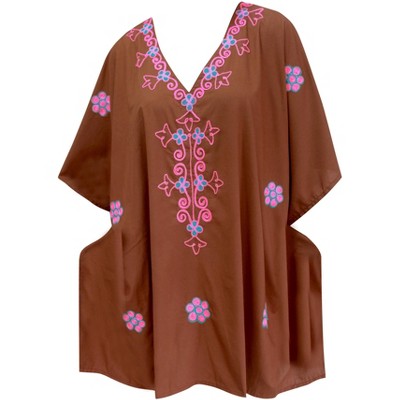 LA LEELA women's Vacation Casual Swim Holiday Beachwear Summer Bathing Suit Cover Ups Mini Beach Dress Robe 1X-2X Brown, Solid