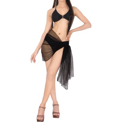 LA LEELA Womens Swimsuit Bathing Suit Sarongs Skirt Beach Short Bikinis Wraps Beachwear Summer Cover Ups for Women One Size Short Black, Solid