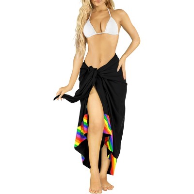 LA LEELA Womens Beach Bikini Swimwear Swim Cover Up Wrap Summer Wraps Swimsuit Beachwear Sarong Coverups Skirts for Women One Size Black,Solid