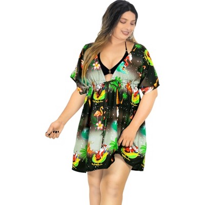 LA LEELA Women's Beachwear Swim Beach Dress Cover Ups for Bathing Suit Cover up Swimsuit Coverup for Women Christmas Tree XL-XXL Xmas Ebony Santa Surf