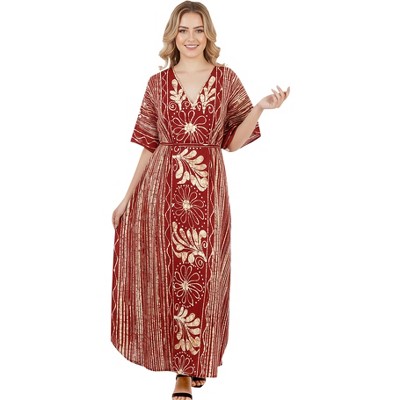 LA LEELA Women's Summer Loose Caftan Maxi Night Evening Gown Loungewear Dashiki House Dresses for Women 2X-3X Red, Floral