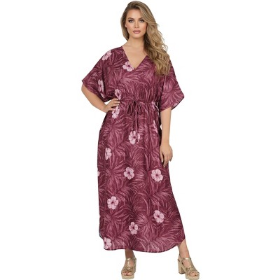 LA LEELA Womens Maxi Summer Nightdress Cover Up Gown Caftan Loungewear Dashiki House Dresses for Women 1X-2X Red Floral