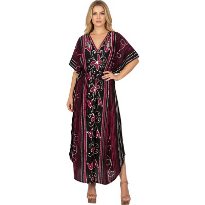 LA LEELA Women's Summer Holiday Beach Casual Dailywear Loose Caftan Long Boho Sleepwear Loungewear Dashiki House Dress 2X-3X Black, Sun