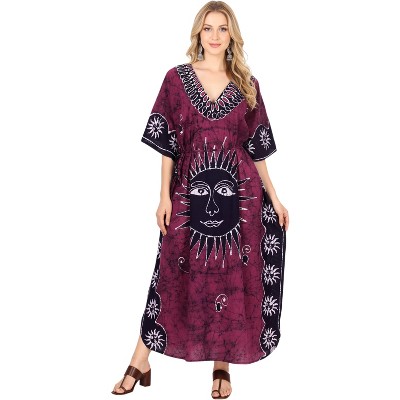 LA LEELA Womens Summer Holiday Beach Casual Dailywear Relaxed Fit Caftan House Sleep Shirt Loungewear Dashiki Dresses for Women 2X-3X Red, Sun