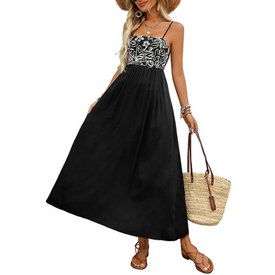 Womens Dress Sleeveless Square Neck Smocked Summer Tie Strap Midi Dress