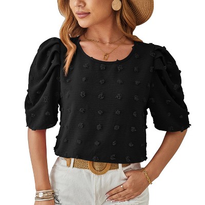 Coolmee Women's Puff Short Sleeve Casual Tops Fashion Polka Dot Crew Neck Blouses Dressy Ladies Summer Tops