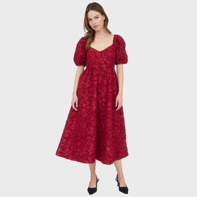 - red linen dress
