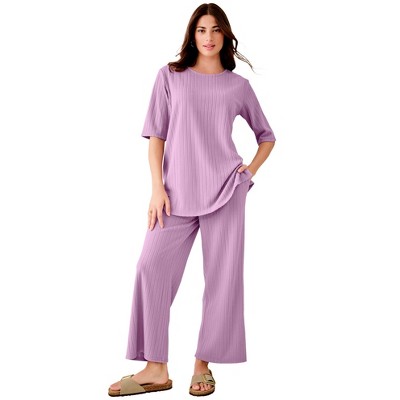 Roaman's Plus Size Long Sleeve Ten-Button Shawl-Collar Pant Suit – 2-Piece Pant Set