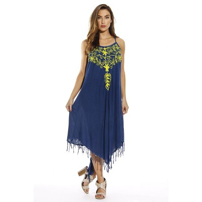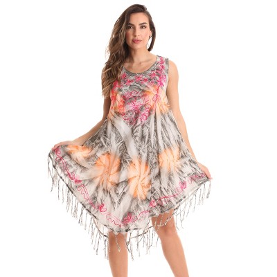 Riviera Sun Womens Tie Dye Summer Dress - Beach Cover Up with Embroidery & Fringes- Dresses for Women