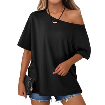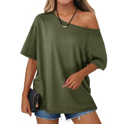 Imily Bela Womens Oversized Off The Shoulder T Shirt Cotton Short Sleeve Casual Tunic Tops Summer Loose Fit Flowy Tees