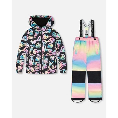 Deux par Deux Girl Two-Piece Play Snowsuit Black with Multicolor Print Jacket