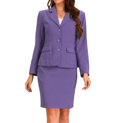 Allegra K Women's Business Suit Collared Button Down Blazer and Pencil Work Skirt Set 2 Pcs