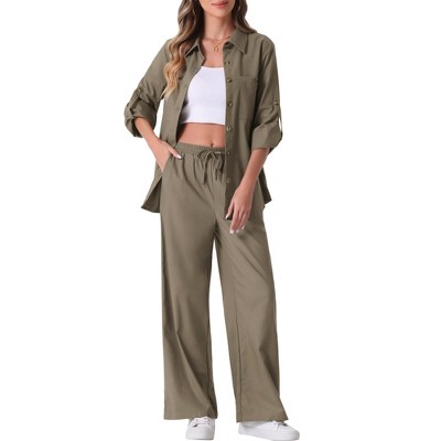 Allegra K Women's Elegant Short Sleeve Blazer and Wide Leg Pants Business Suit Set 2 Pcs