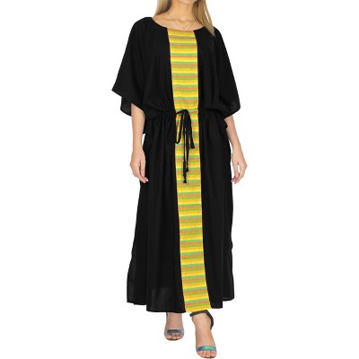 LA LEELA Women's House Daily Routine Evening Wear Loungewear Solid Casual Relaxed Caftan Cover Up Dresses for Women Plus Size One Size Black, Solid