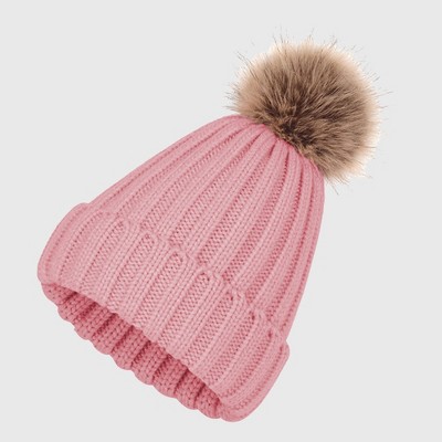 Anna-Kaci Women's Cable Knit Beanie with Faux Fur Pom-Pom - Warm Stretchy Winter Hat for Casual Daily Wear