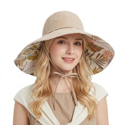 Anna-Kaci Women's Reversible Wide Brim Sun Hat UV Protection Floral Print Beach Outdoor Bucket Hat
