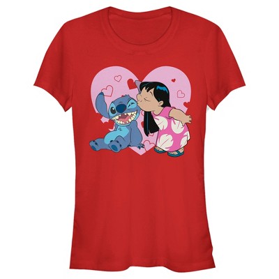 Juniors Womens Lilo & Stitch Kisses T-Shirt