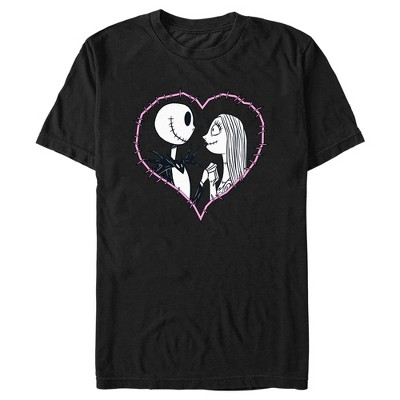 Men's The Nightmare Before Christmas Jack and Sally Pink Heart Stitch T-Shirt