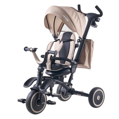 VEVOR Toddler Tricycle & Stroller for 18 Months to 5 Year Old, 7-in-1 Kids Trike with Parent Push Handle,Canopy, Rotating Seat and Storage,Khaki&Black