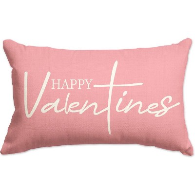 Lomsoe 1pc Valentines Day Linen Pillow Covers Pink Happy Valentines Pattern Throw Pillow Cover Decorations for Sofa Home Decor.