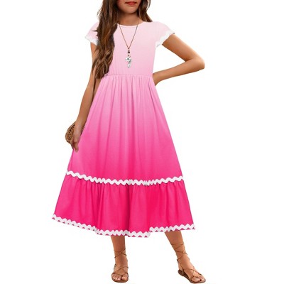 Arshiner Girls Summer Maxi Dresses Short Sleeve Casual Flowy Tiered Dress with Pockets for 4-14 Years