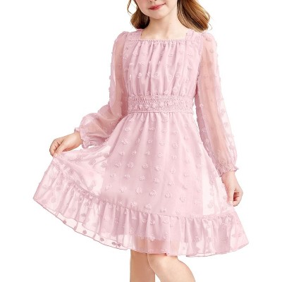 Arshiner Girls Dresses Long Sleeve Square Neck Swiss Dot Flowy Casual Party Dress
