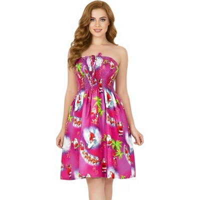 HAPPY BAY Women's Casual Beach A line Slit Smocked Mini Dress Tube Top Evening Short Strapless Christmas Tree Dresses for Women One Size Red