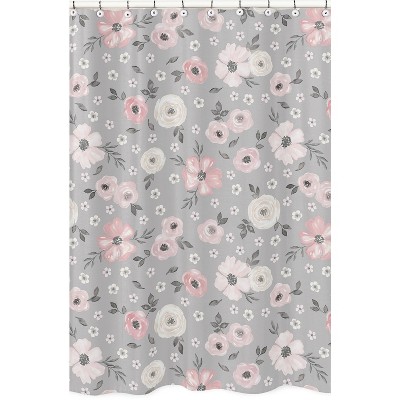 Sweet Jojo Designs Shower Curtain 72in.x72in. Watercolor Floral Grey Pink