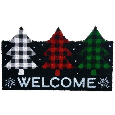 Briarwood Lane Coir Doormat 30x18 Checkered Trees Winter Natural Fiber For Winter Coir Doormat