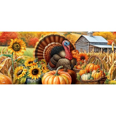 Briarwood Lane Fall Wild Turkey and Pumpkins Mini Mat 22x10 Indoor Outdoor For Fall Doormat