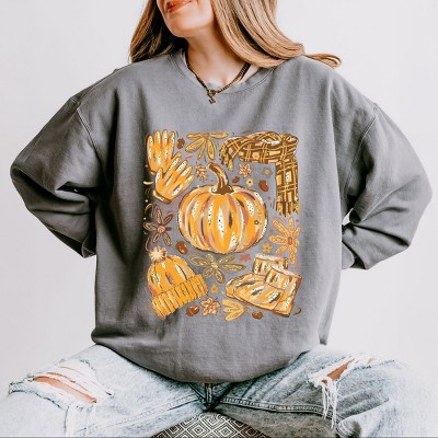 Simply Sage Market Fall Pumpkin Collage Glitter Lightweight Garment Dyed Sweatshirt