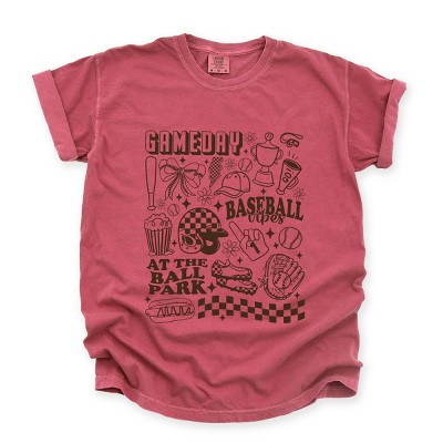 Gameday Baseball Vibes Collage - Women's Garment Dyed Graphic T-Shirt