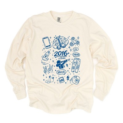 2016 Vibes Sketched Collage - Women's Garment Dyed Long Sleeve Graphic T-Shirt