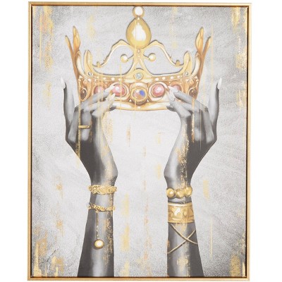 Olivia & May Canvas Crown Living Room Framed Wall Art with Metallic Foil Accents Gold
