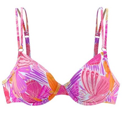Women's Tropical Print Underwire Bikini Swimsuit Top Bra Sizing - LASCANA