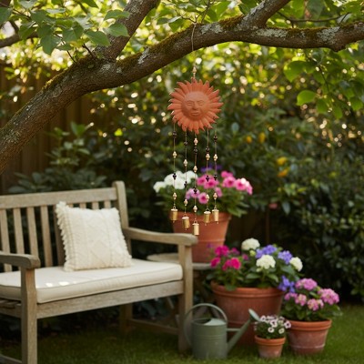 Sunshine Face Garden Wind Chime with Hanging Bells - Outdoor Garden Yard Decor Art for Patio, Balcony, or Porch Display - 36", Brown