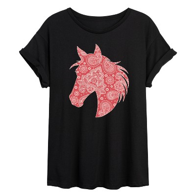Women's - Instant Message - Paisley Horse Head Oversized Graphic T-Shirt