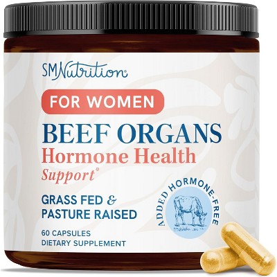 Beef Organ Supplement for Women, 100% Grass Fed & Pasture Raised Beef Organs, Superfood for Hormone Health & Energy Support, SMNutrition, 60ct