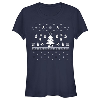 Girl's Nintendo Ugly Christmas Super Mario Pixel T-Shirt