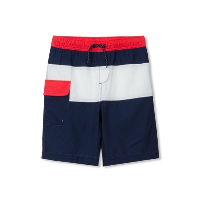 Lands' End Kids Chlorine Resistant Colorblock Hydroliner Board Swim Trunks