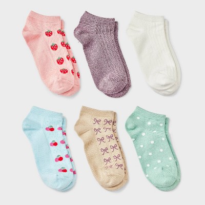 Girls' 6pk Fruit & Bows Pointelle Super Soft No Show Socks - Cat & Jack™ Pink/Gray/Blue