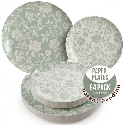 Earthtrends Floral Paper Plates Party Set for 32 Guests | Includes 32 Small 8" Dessert Plates & 32 Large 10" Dinner Disposable Plates | Gracy
