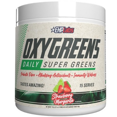 EHPlabs OxyGreens Super Greens Powder, Spirulina & Chlorella, Prebiotic Fiber, Probiotics, Immune Support, 15 Serves (Strawberry Margarita)